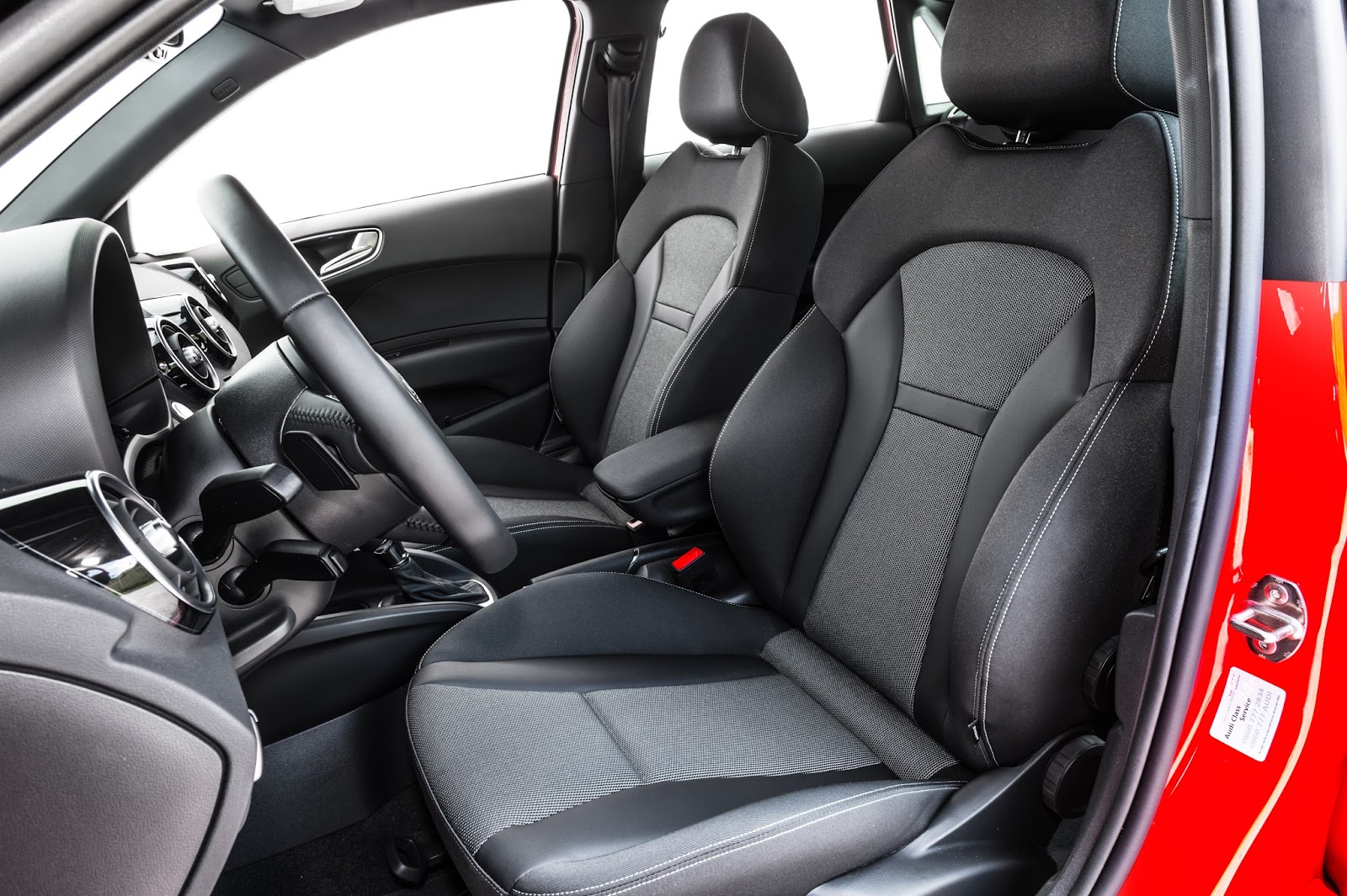 Internamente, o A1 carrega os genes de acabamento e ergonomia de outros Audi em uma embalagem mais compacta. Na versão Ambition, o acabamento interno é preto brilhante e os bancos esportivos dianteiros têm ajuste de altura. O teto é revestido de tecido preto, enquanto volante e manopla do câmbio são revestidos de couro. Como opcional há o teto solar elétrico “Open Sky”. Os faróis possuem xenônio nos fachos baixo e alto, com luzes diurnas de LEDs, limpadores e ajuste automático de altura, de acordo com a distribuição da carga interna; vidros laterais e traseiros com isolamento térmico, faixa cinza no para-brisa (para bloquear os raios de sol), entrada Audi music interface e rádio MMI e com Bluetooth para chamadas telefônicas e streaming de áudio de smartphones.