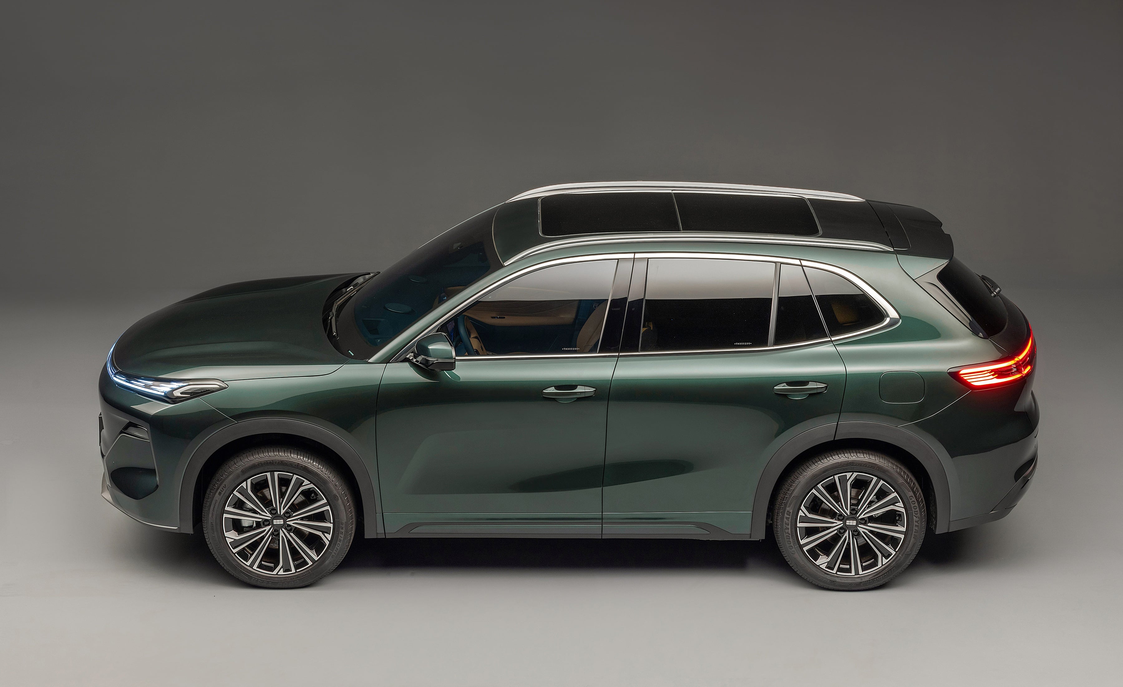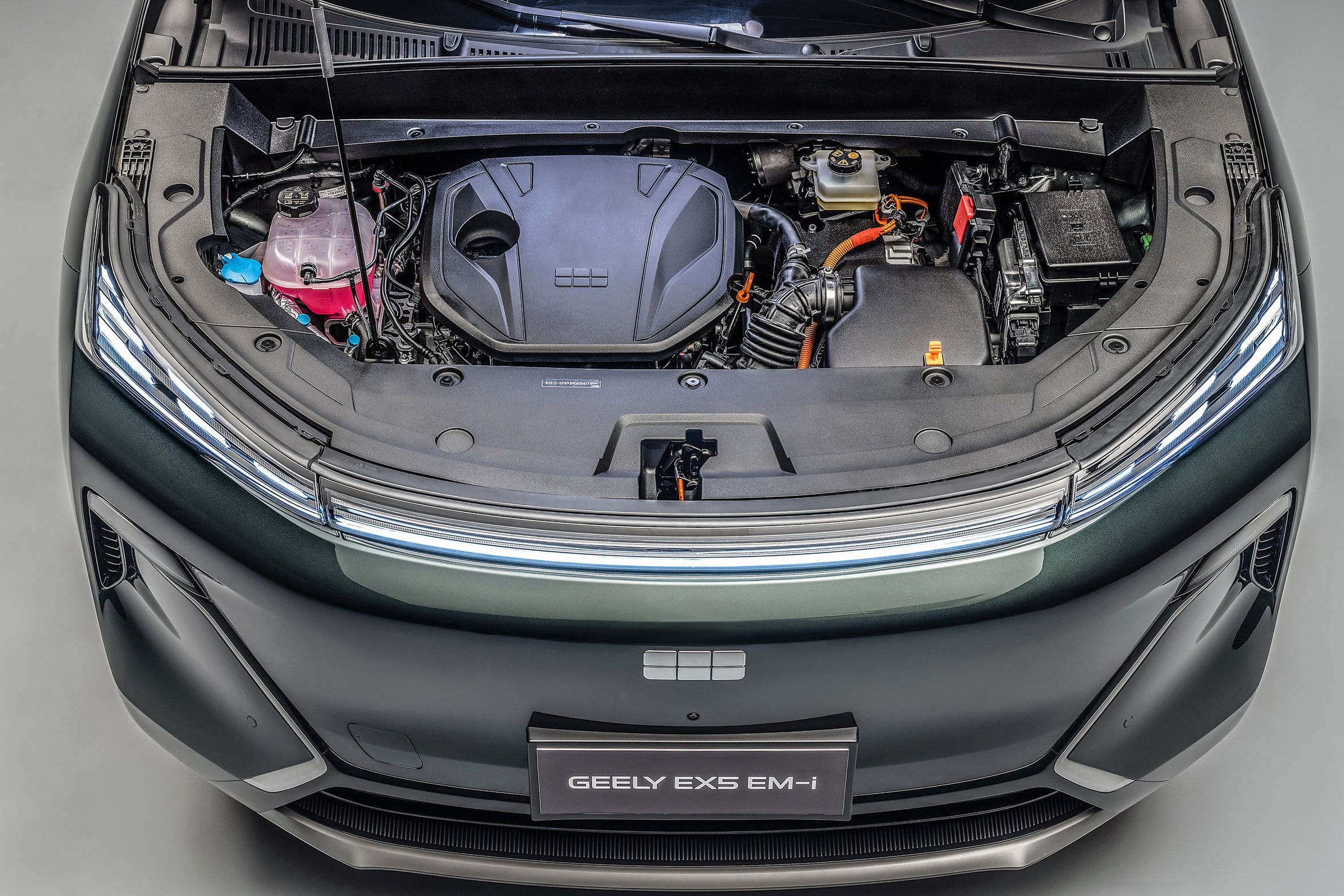 Com amplas dimensões, a carroceria do Geely EX5 EM-i é muito bem-aproveitada em termos de espaço interno: 89,1% do habitáculo é utilizável pelos cinco ocupantes. O EX5 híbrido possui design exclusivo, com elegância e sofisticação: os faróis Full LED são completados por uma barra de LED central, criando uma faixa de luz contínua no design nas versões Max e Ultra. Atrás, as lanternas traseiras Full LED seguem a mesma concepção, com efeito 3D. O gigante teto solar panorâmico, com 1,18 metro quadrado de área, amplifica a conexão dos ocupantes com o ambiente.