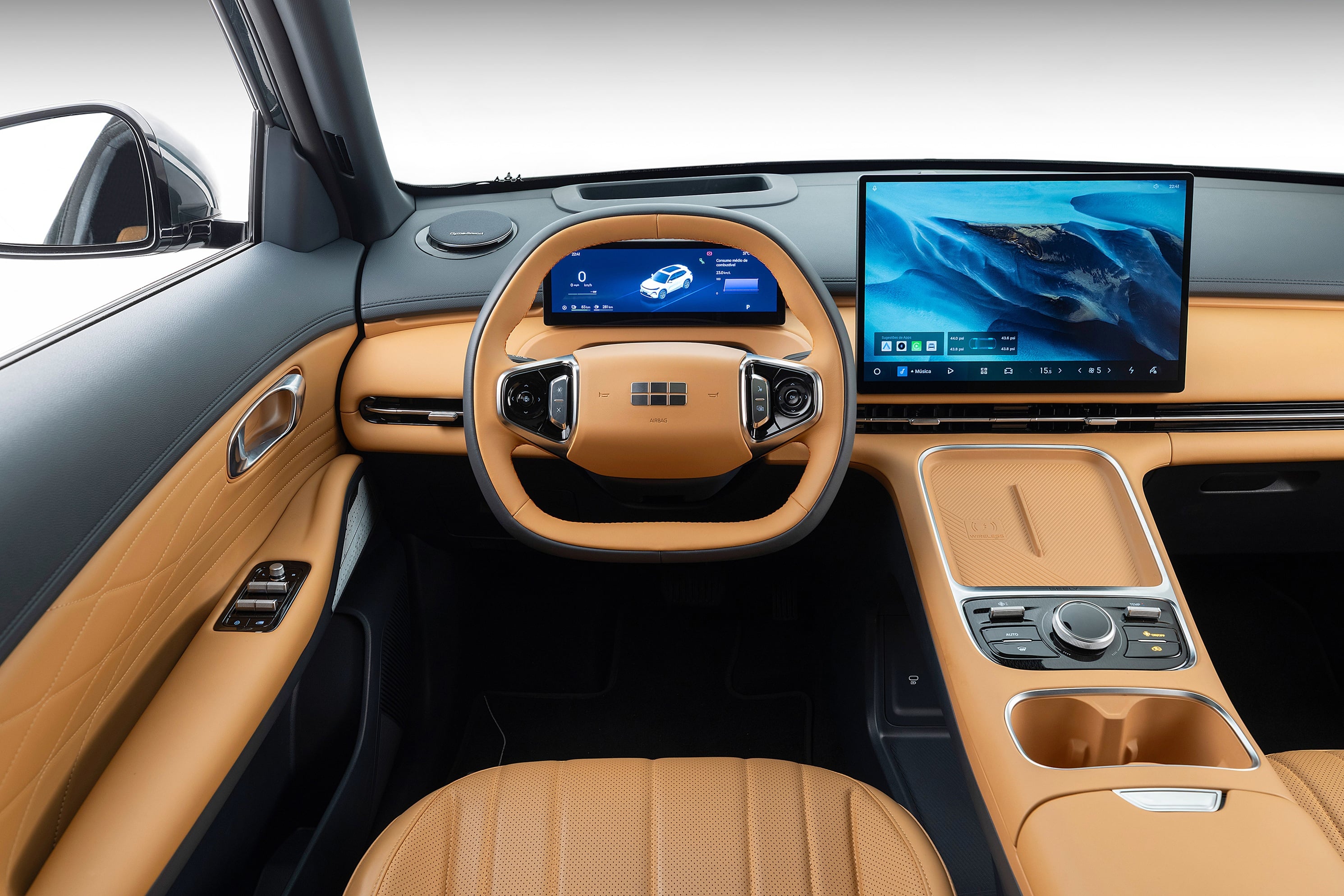 O interior do EX5 EM-i é um show à parte, com diversos itens de conforto, tecnologia e segurança. O SUV híbrido da Geely se destaca por inúmeros itens: Head-Up display de 13,8 polegadas (projetor de informações no para-brisa), sistema de som premium FLYME SOUND com 16 alto-falantes e 1.000W potência, luzes ambientes dinâmicas com seleção de 256 cores, painel digital de 10,2”, central multimídia FLYME AUTO de 15,4″, carregador por indução, conectividade sem fio com Apple CarPlay e Android Auto, comandos de voz acionados pela frase “Olá, Geely” com mais de 200 comandos, atualizações Over-The-Air (OTA) e funções remotas, através do App Geely.