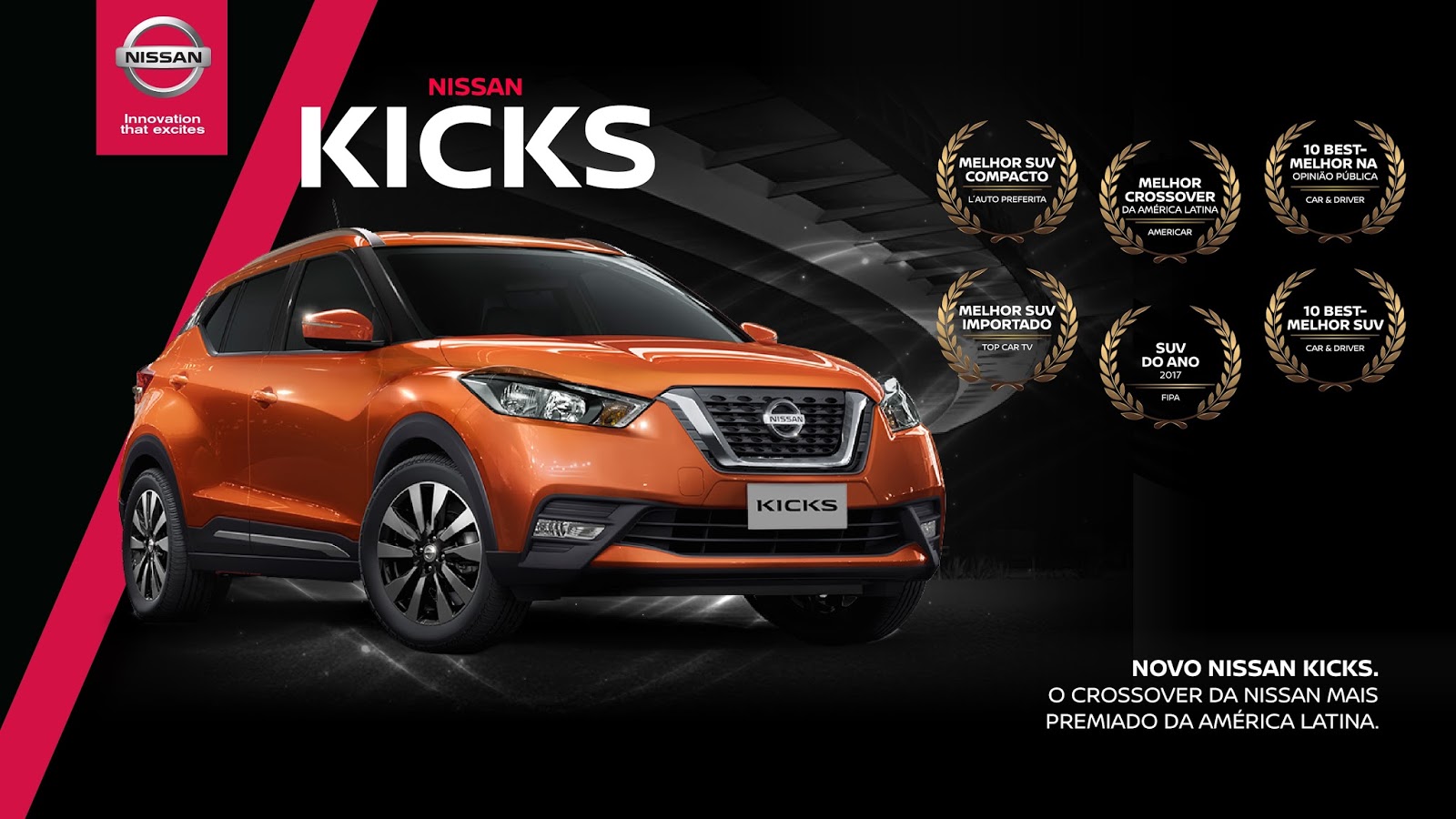 Poucos meses após sua estreia global no Brasil, o Nissan Kicks tornou-se um dos modelos mais elogiados pela imprensa especializada do Brasil e de toda a América Latina. E o crossover já conquistou seis prêmios, resultados das votações de jornalistas automotivos de um total de 22 países, incluindo os Estados Unidos, América Central, Caribe e América do Sul. Na galeria de prêmios recebidos pelo Nissan Kicks até o momento, estão:
