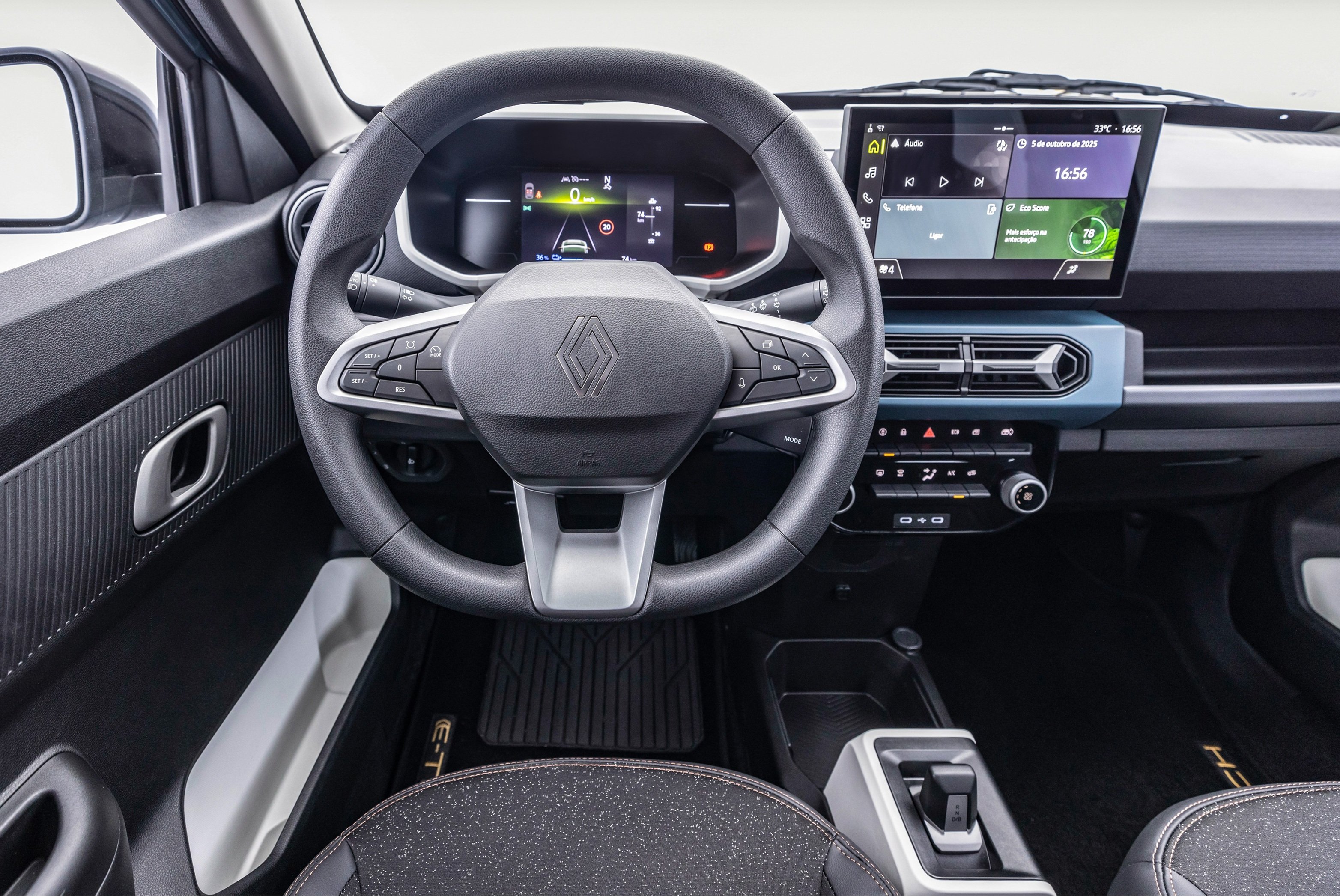 O painel frontal foi totalmente reinventado, com a nova linguagem de design da Renault, que se diferencia por uma arquitetura mais horizontal, e uma nova gama de telas digitais. O novo Kwid E-Tech conta com painel de instrumentos digital e personalizável de 7” e multimídia de 10”, com conectividade sem fio para Apple CarPlay e Android Auto. Além disso, o novo Kwid E-Tech é o único da categoria com 11 sistemas avançados de assistência à condução, incluindo alerta e assistente de permanência em faixa, frenagem automática de emergência, reconhecimento de placas de velocidade, sensor de fadiga, assistente de partida em rampa, limitador de velocidade, piloto automático, câmera de ré e novos sensores de estacionamento dianteiros e traseiros. Além disso, o Kwid E-Tech vem equipado com seis airbags de série.
